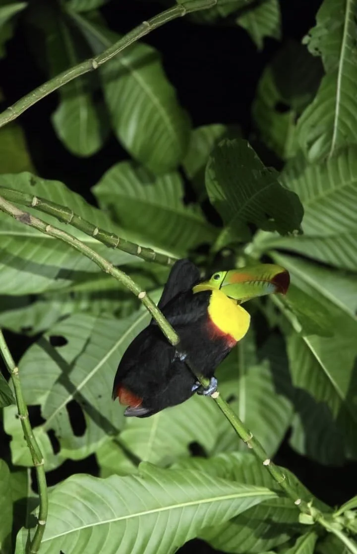 A Keel-Billed Toucan, they love Mango trees - you’ll spot them in there!