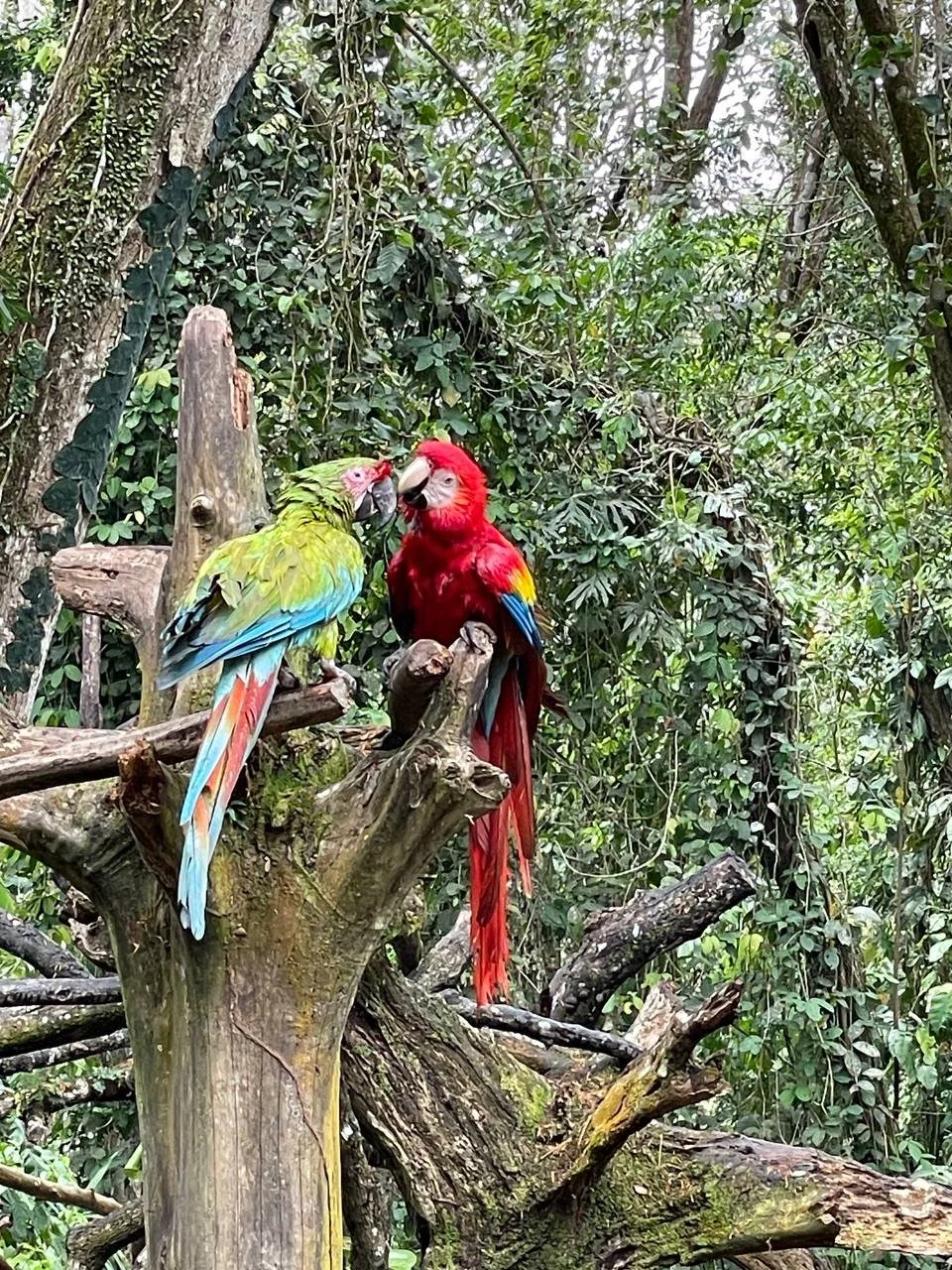 Great Green Macaw & Red Scarlett Macaw at the Jaguar Rescue Center