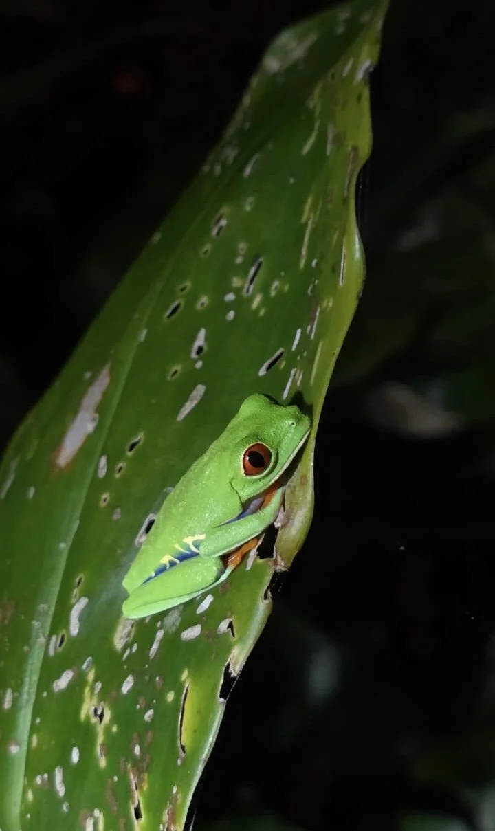 Spotted this Red Eye Tree Frog on the night tour, when they are asleep you just see them fully green on the leaf, they hide well!
