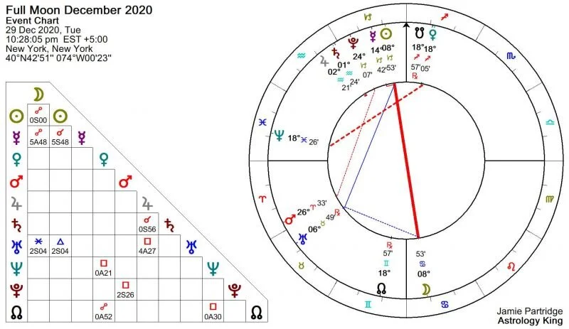 Interesting fact! The Full Moon of December is positioned in the constellation of Gemini, although the moon is in the Sign of Cancer. This happened because, over time, the Sun Signs were moved almost an entire Sign out of alignment with the constellations that were named over 2000 years ago. Therefore, this Full Moon includes aspects of both Gemini and Cancer.